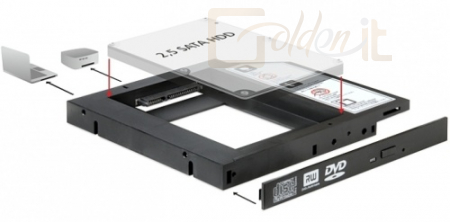 DELOCK Átalakító Slim SATA 5.25 beépítő keret 2.5" SATA HDD-hez 12.5mm-ig